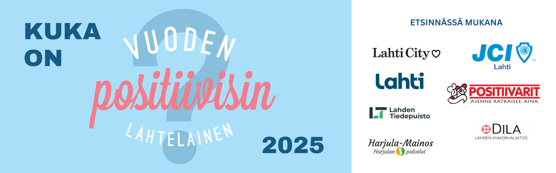 Lahdessa on juhlistettu positiivisuutta jo vuodesta 2004. Yli kahden vuosikymmenen ajan Vuoden Positiivisin Lahtelainen -kilpailu on nostanut esiin ihmisiä, yhteisöjä ja yrityksiä, jotka tekevät arjesta valoisampaa ja toimivat esimerkkeinä positiivisen asenteen voimasta. Kilpailu jatkaa perinnettä, joka alkoi jo valtakunnallisesti vuonna 1993 Positiivarien valitessa Vuoden positiivisinta suomalaista.